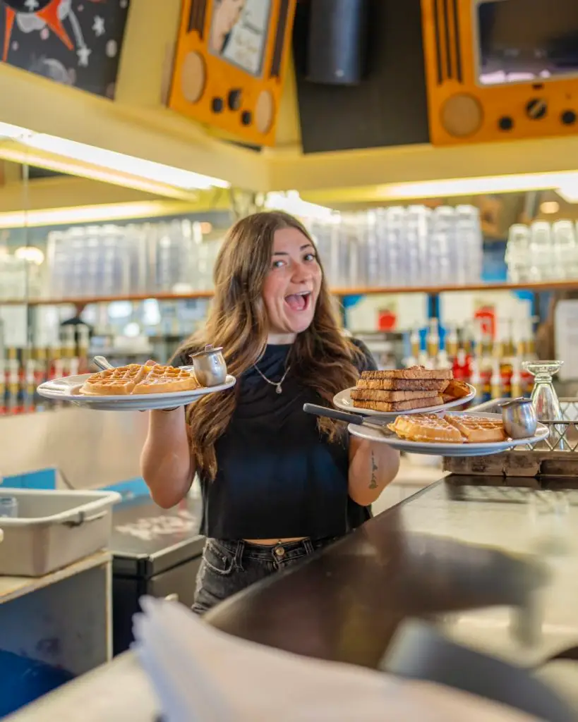 Five and Dime Diner in Sidney serves hearty breakfast and lunch with local ingredients, organic coffee, and retro charm in a lively setting.